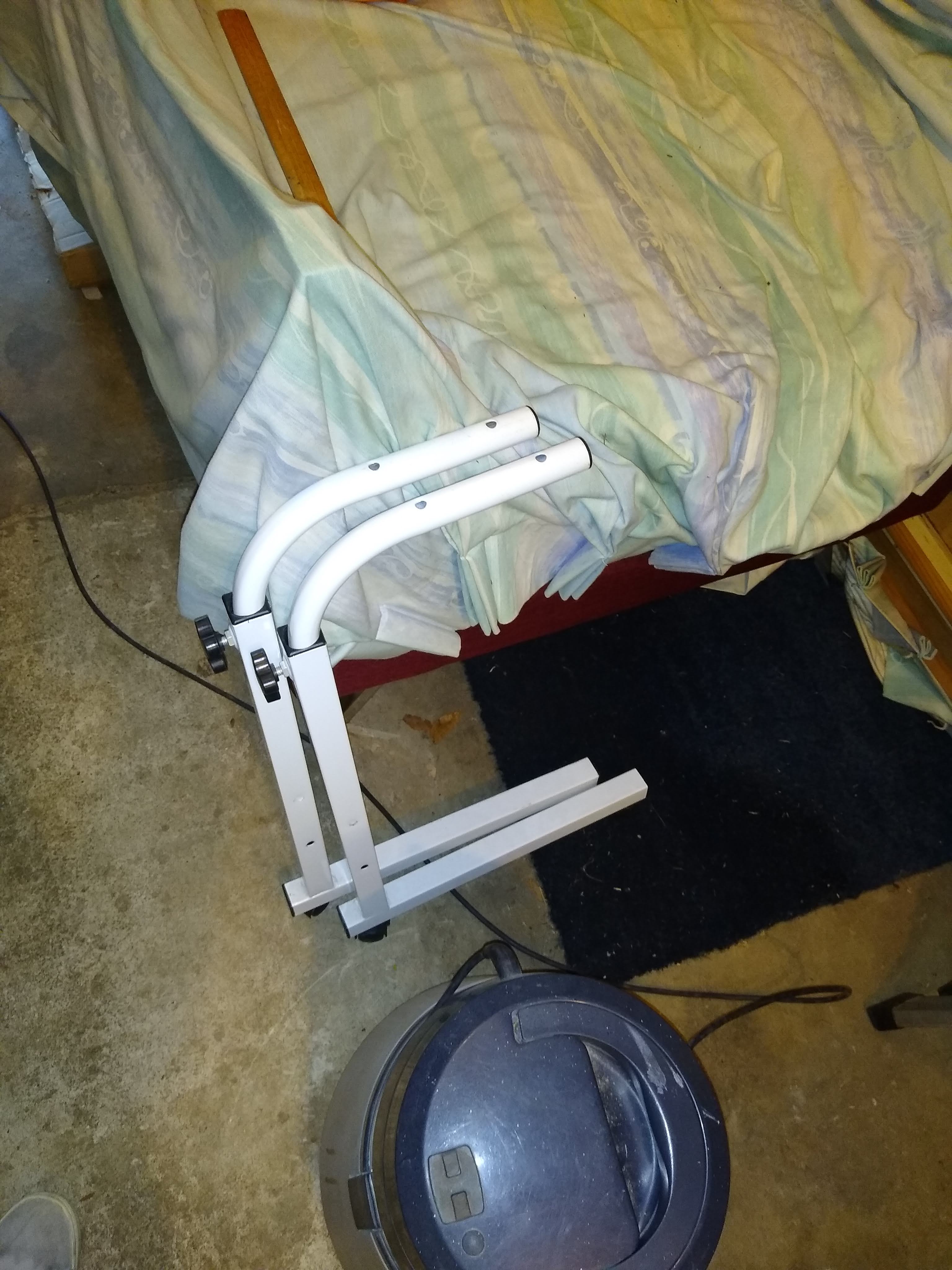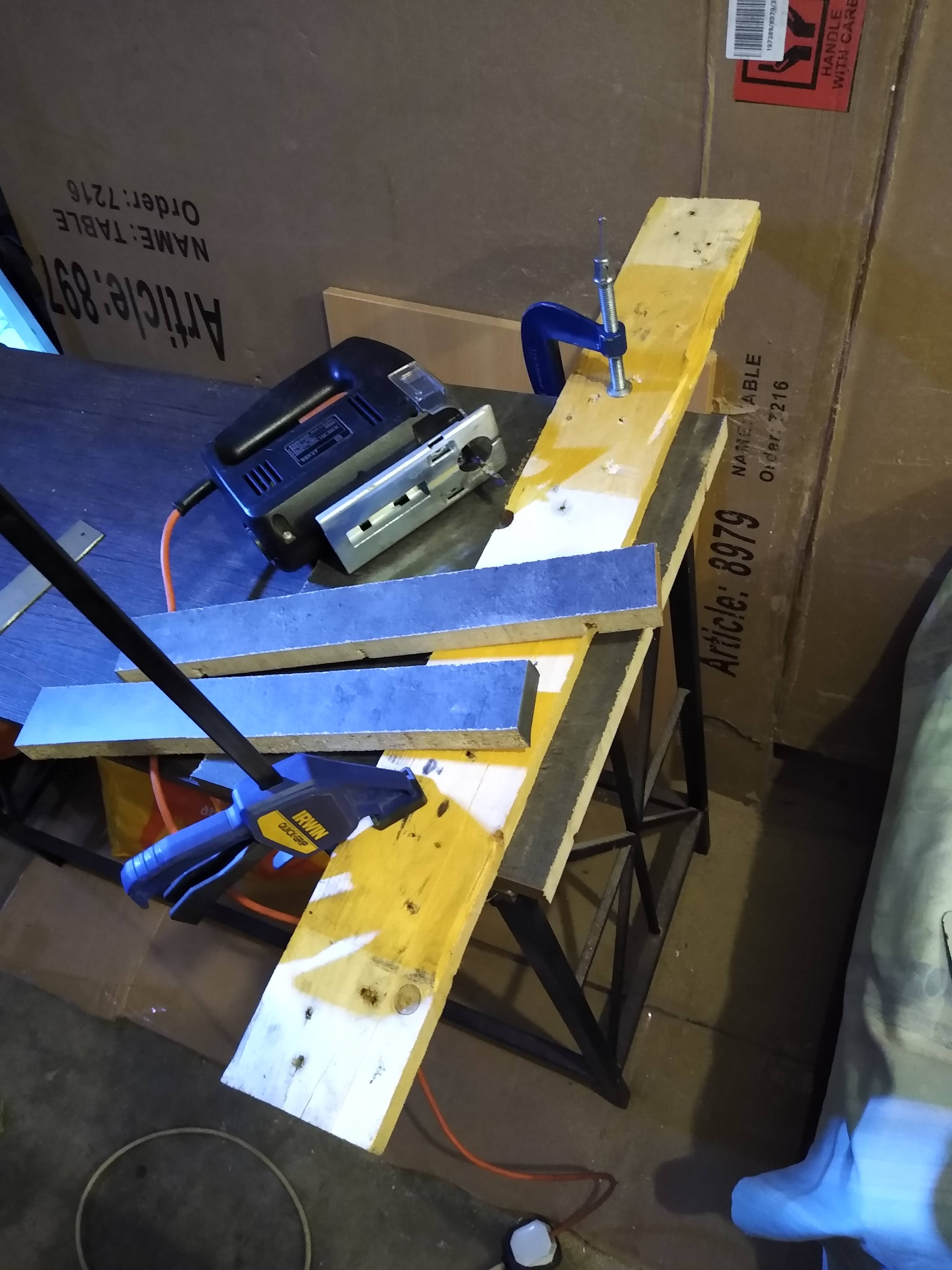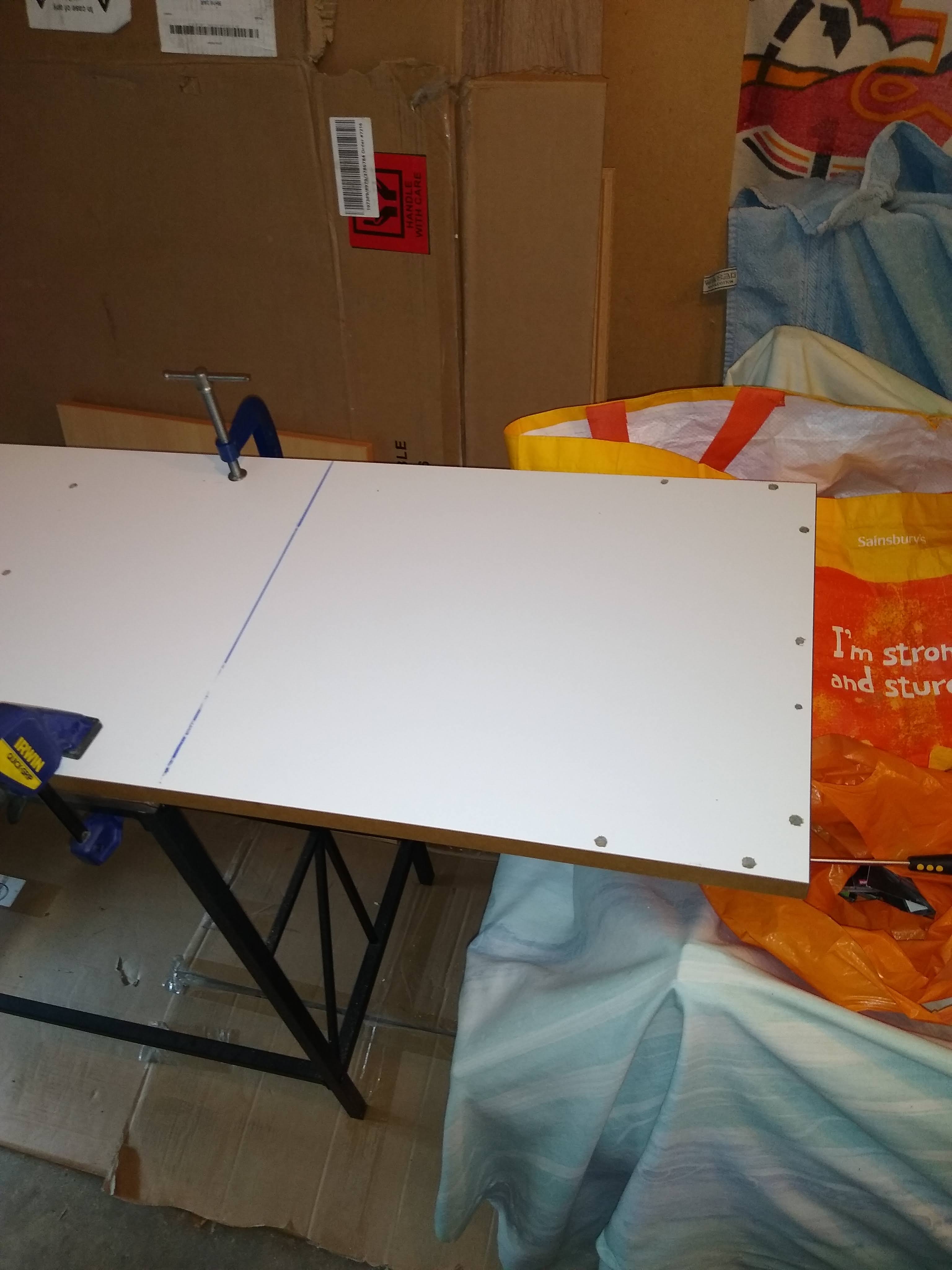 The next step was to make a trolley to fit the hoover and the collection bin. This basically involved cobbling together some mdf and old legs from a desk of some sort. It wasn’t pretty but it kinda worked.