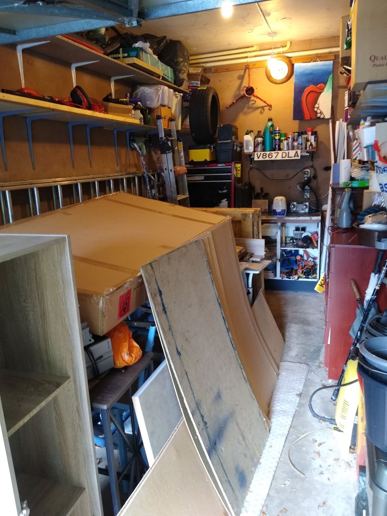 Step 4: Realise there is not enough space to swing a pallet buster in the garage. To make some space I sold and donated the old furniture that was taking up space. I also took the opportunity to stick down some el cheapo flooring in a bid to make it slightly nicer and maybe absorb a little bit more reverb.