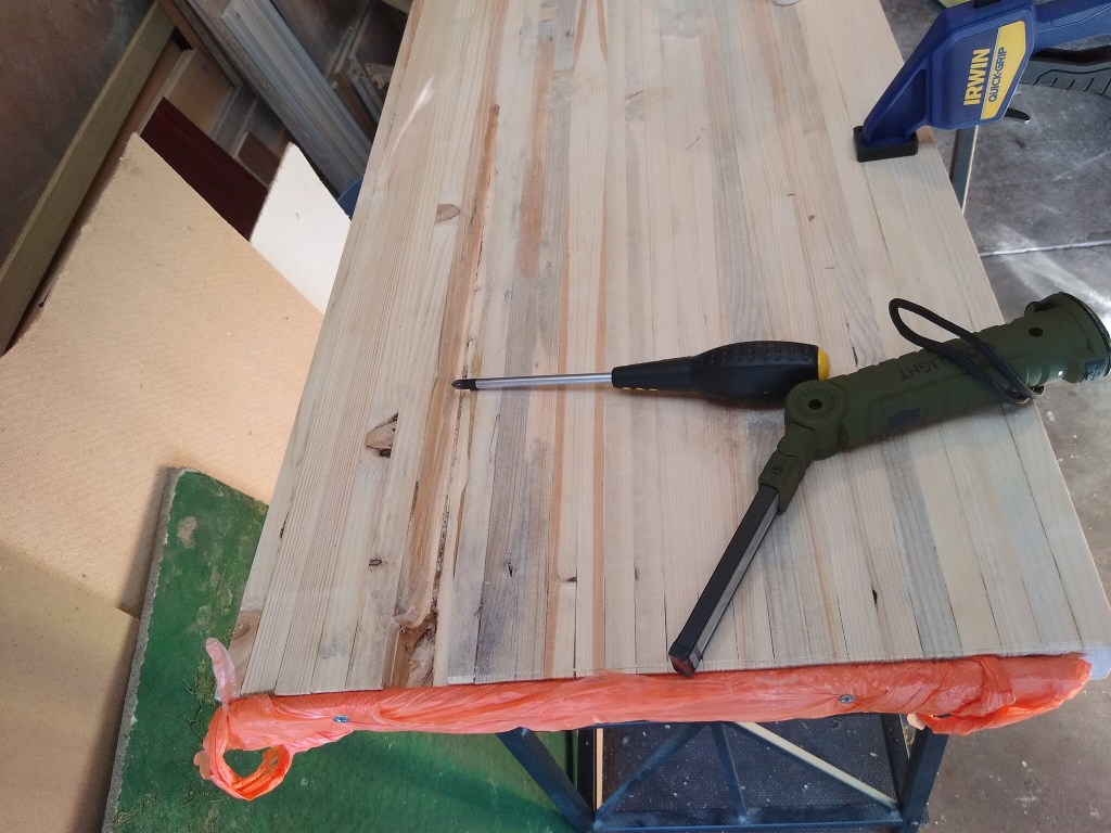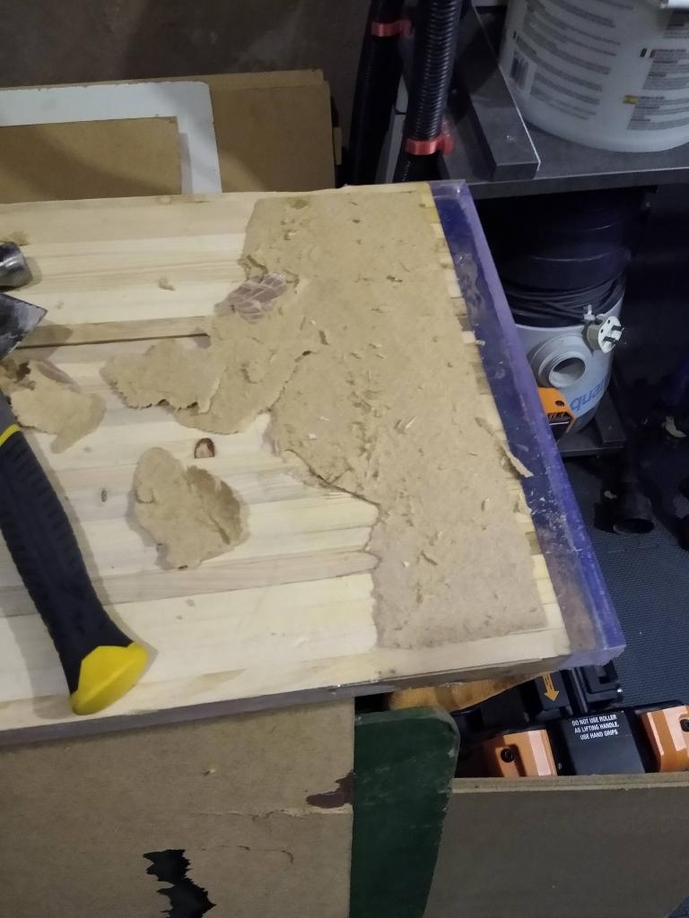This resulted in needing to scrape off the stuck hard board and leaked epoxy from the back of the table with a combination of a paint scraper, chisel, orbital sander and a bit of swearing. Tactical swearing gets regularly employed to get me out of jams.