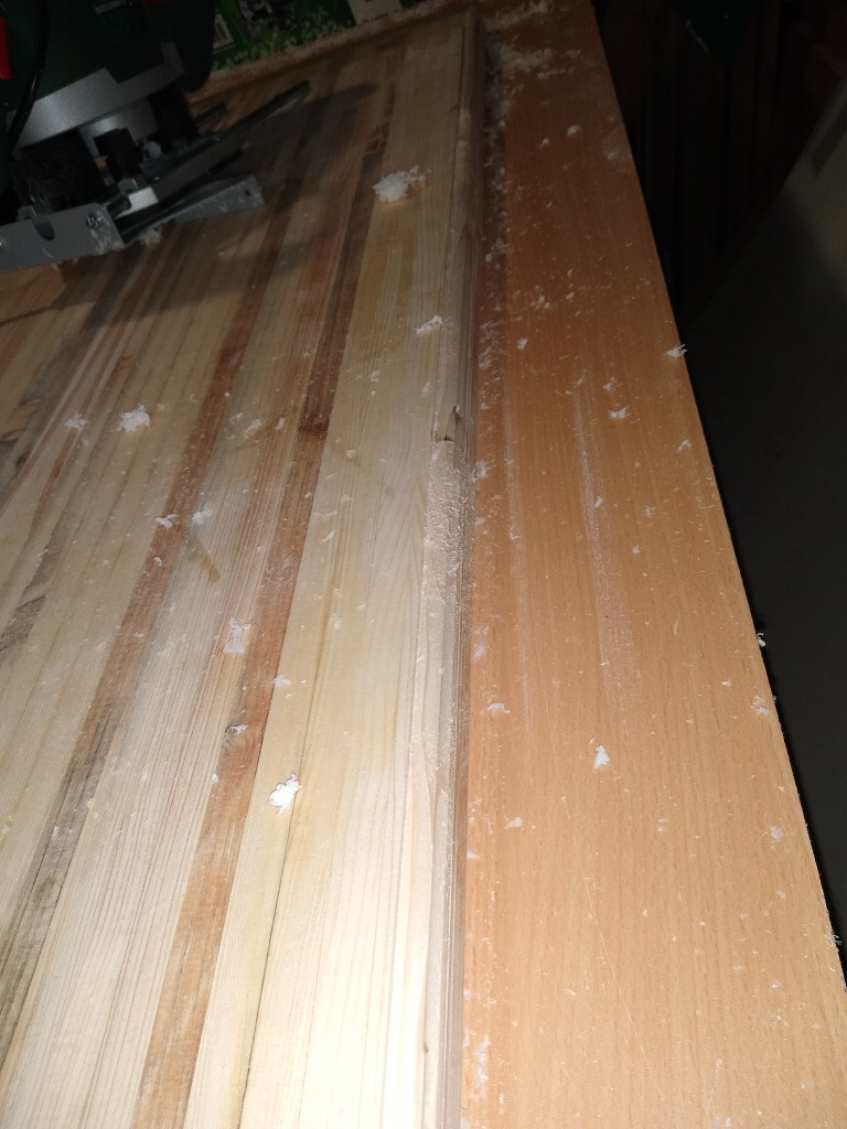 I screwed a couple of bits of wood together to make a C shape that could be clamped to the end of the table and on top of some hardboard. In theory the epoxy would bond to the table but not to the release tape I used on the C shape and hardboard. I’d also used a router (more about that later) to make a small inset section on the end of the table. I left it 24 hours before removing the “form” and my first impression was it had worked!