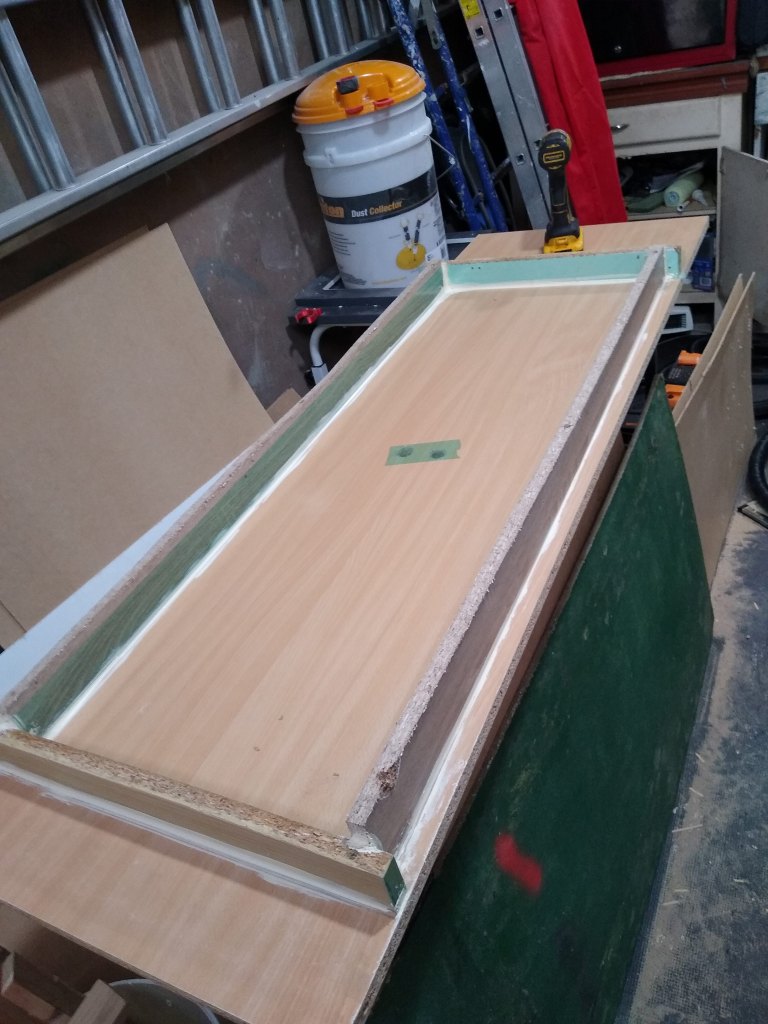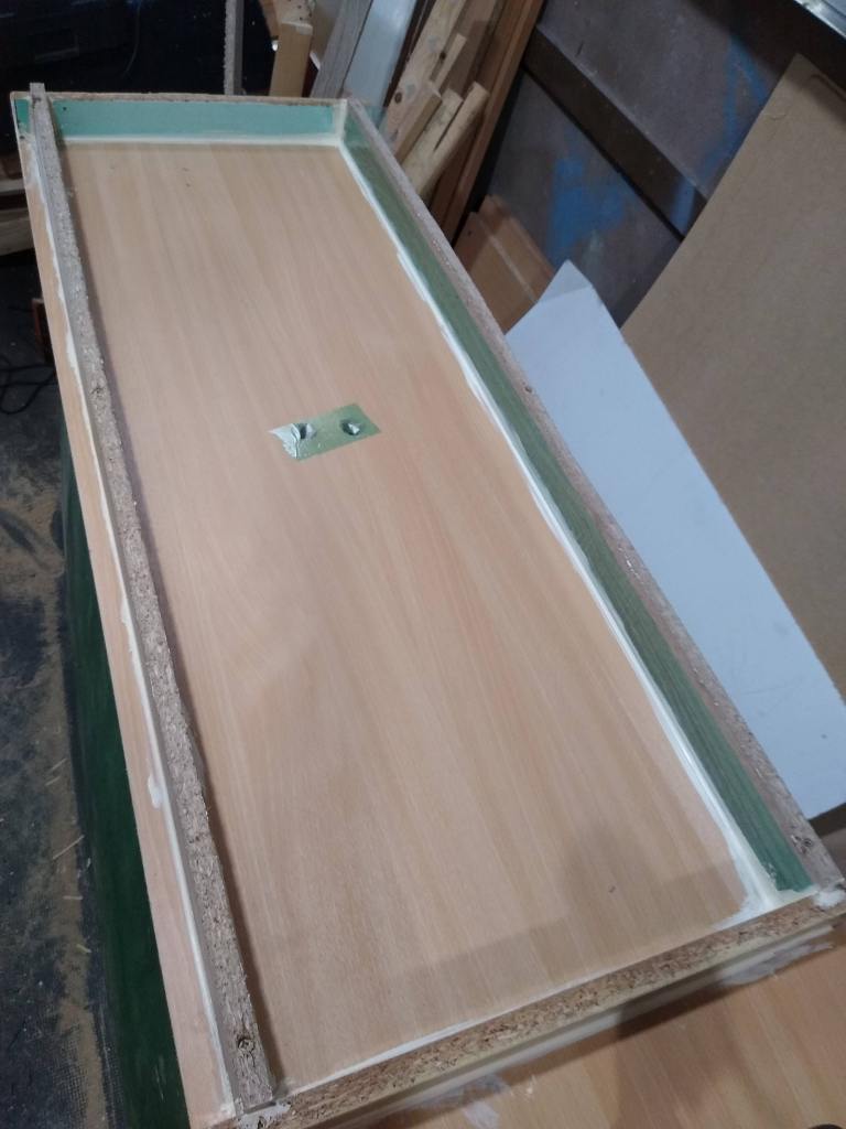 Step 15: Make a proper form this time. An old MDF wardrobe generously donated it’s body parts for the greater good. I traced a line around the table ontop of the MDF panel and then trimmed another panel down with a jigsaw to make the box. Next it was just a case of screwing the box together and calking the bottom before screwing it to the base. I caulked all along the out side and the inside of the box before adding release tape to every surface. No more scraping leaked epoxy for this guy. Probably.