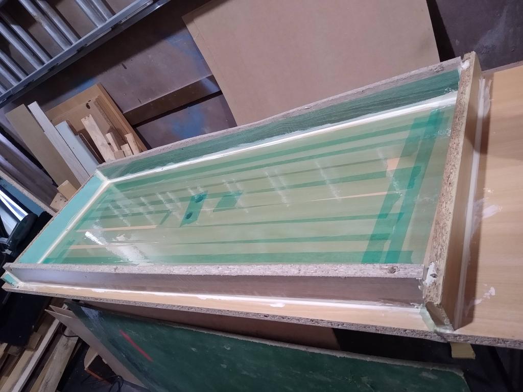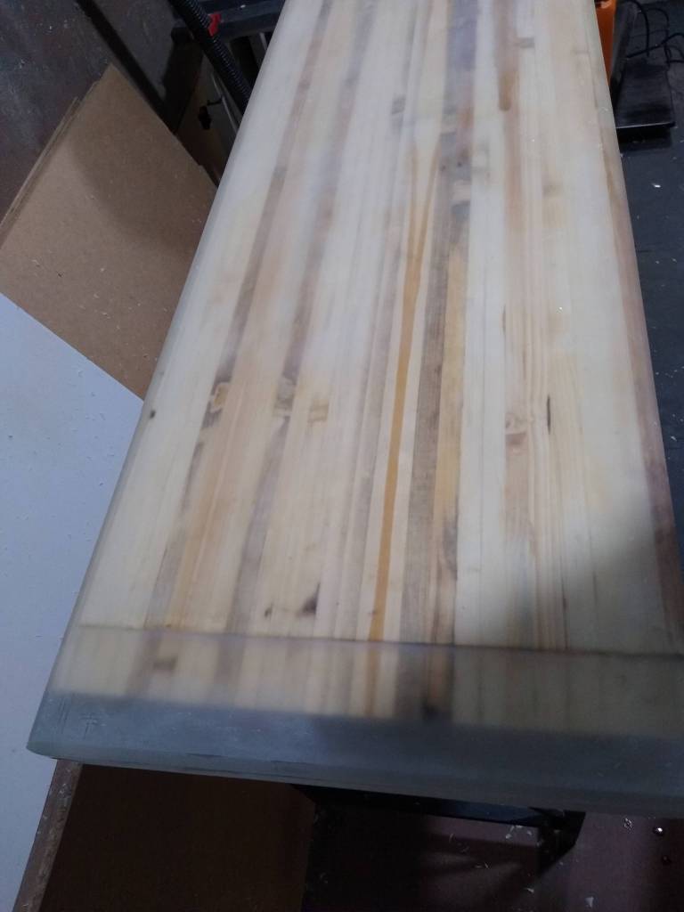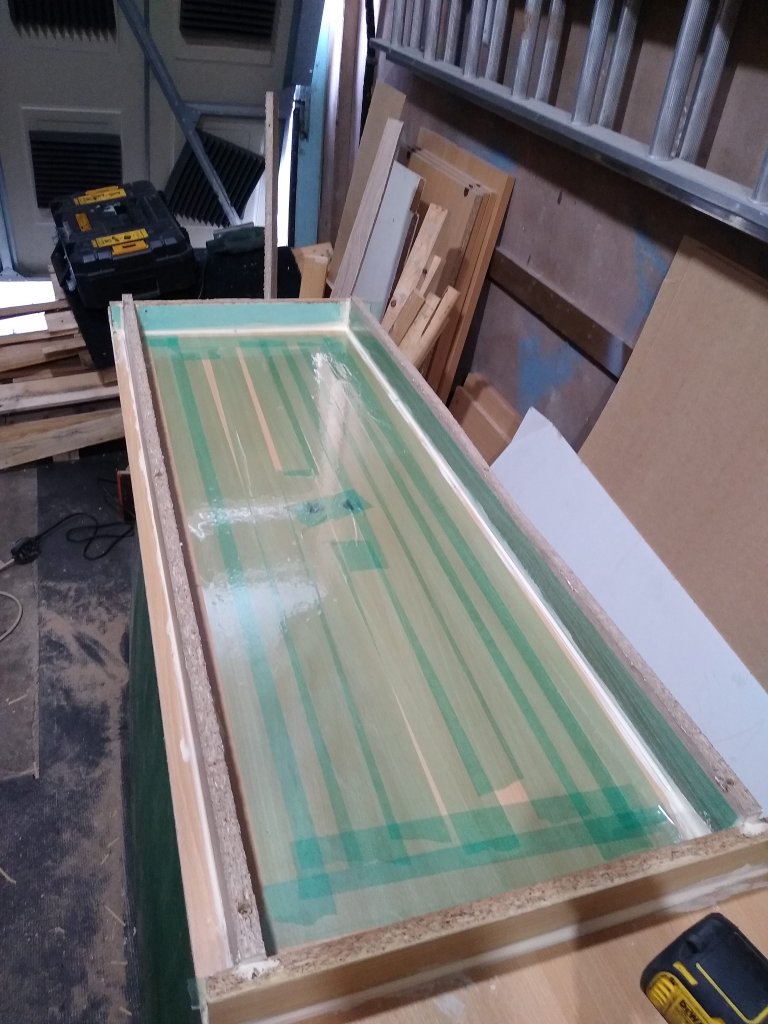 I also found that the caulk had pretty much set into the epoxy on every side, this wasn’t a huge deal as I was going to route every edge again. The routing went far smoother than last time, apart from a slip on the underside it turned out pretty uniform. I also, also noticed that some tiny bubbles had escaped being popped. I may have to invest in a blow torch as my ancient heat gun is a bit too asthmatic for popping epoxy bubbles.