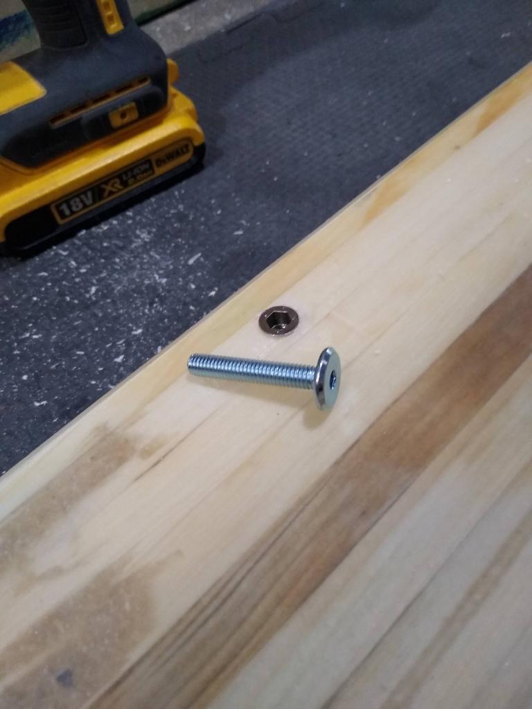I decided some simple threaded inserts would be the best way of attaching the legs to the table. They were good value, easy to install and looked pretty neat!