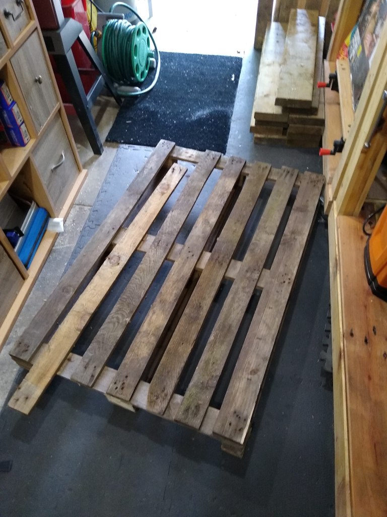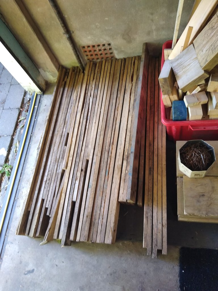 As normal this is combination of using the pallet buster and jigsawing out any stubborn boards. Followed by hammering out the nails. One day I’ll get a compressor and a denailer tool. (https://woodenduck.co.uk/2022/10/18/pallet-buster/).