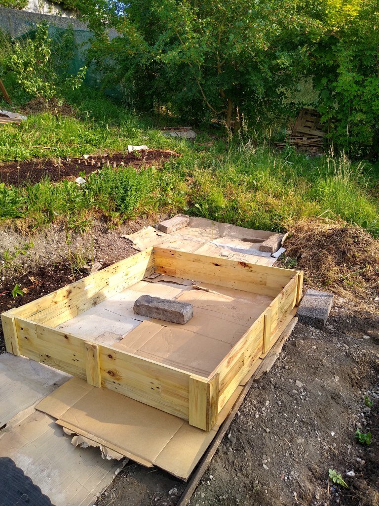 After lining the small bed with some eco friendly and breathable material it was put to use with some decent soil and various herby-planty things. The bigger bed was lined with cardboard, this seems to be the liner of choice as its biodegradable and still keeps weeds and critters out.