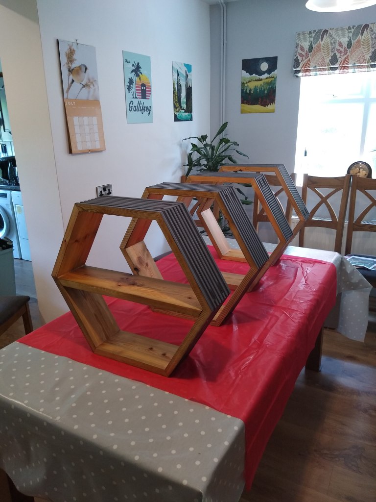 Just a quick post. I got a commission to make some hexagon shelves out of some old decking which seemed simple enough..at first!