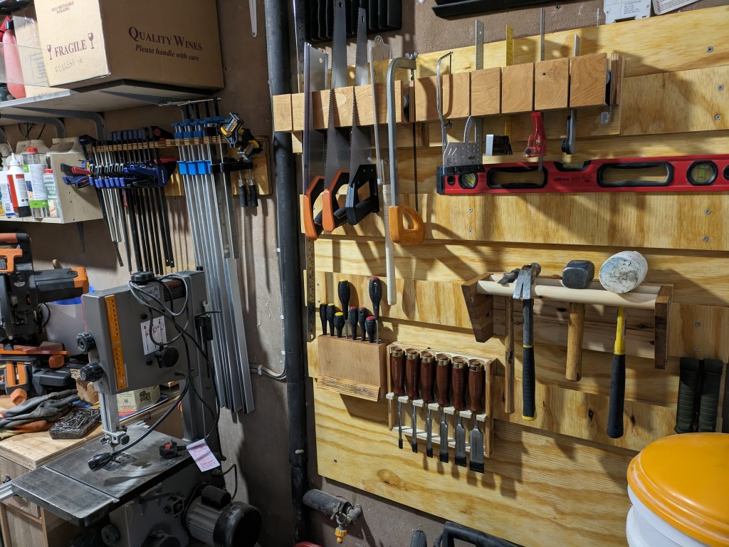 As I’ve made more things over the last year or so I’ve chipped away at improving the efficiency and flow of my little workshop space. Tool storage was on the top of the list now. I wanted some kind of racking to enable quickly grabbing a commonly used tool. I have buckets of offcuts so Continue reading